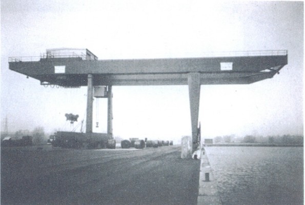 La gru adibita alla movimentazione di containers e/o coils nel Porto fluviale di Cremona, è del tipo a cavalletto scorrevole su rotaie disposte parallelamente alla banchina e con scartamento di 20m. Le due travi principali del cavalletto, che costituiscono le vie di corsa del carro-argano, sono disposte ortogonalmente alla banchina e la loro lunghezza è tale da permettere un’escursione utile del carro-argano di 42m complessivamente. Questa disposizione permette di servire una fascia a sbalzo di 12 m oltre la rotaia lato fiume e di 10m oltre la rotaia lato terra.