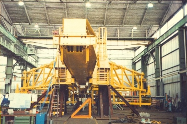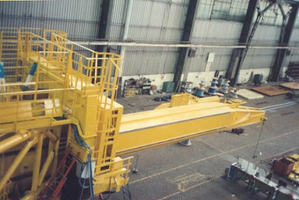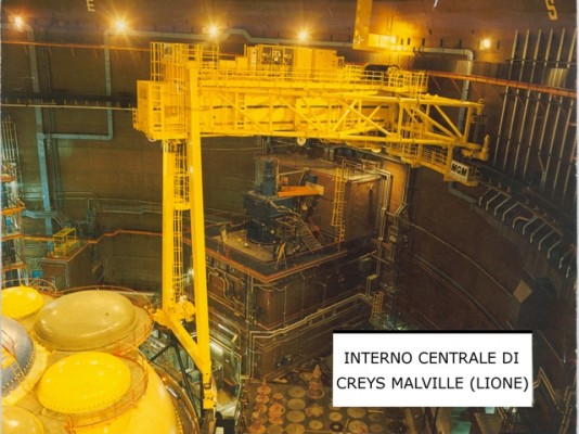 La gru per il reattore della centrale atomica di Creys-Malville è una gru polare a semiportico che scorre su una via di corsa esterna con diametro 62m posta 14.4m sopra il livello della via di corsa interna con diametro 35.7m. I differenti livelli d’imposta della gru hanno reso necessario adottare nell’analisi sismica due differenti spettri sismici.