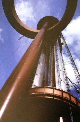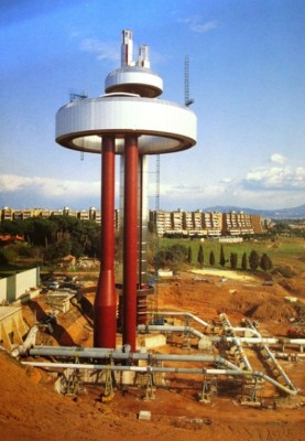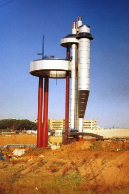 La costruzione si innalza fino a 93m dal suolo con una soluzione architettonica che, integrandosi perfettamente all’organismo funzionale, rende l’opera una forte sintesi di masse in armonioso equilibrio.