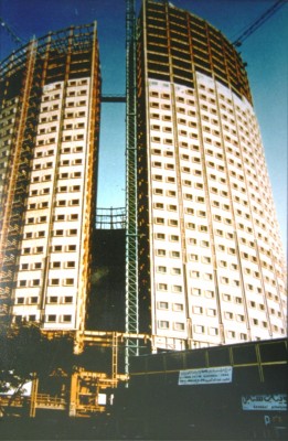 Si tratta di un complesso di quattro edifici a torre: uno a pianta rettangolare di 74x25m con altezza di 100m e gli altri tre con piante a forma di settori di un’unica corona circolare con raggio esterno di 47m e raggio interno di 28m; ogni torre ha 60m di sviluppo sull’asse. I tre edifici, più alti di quello a pianta rettangolare, hanno uin’altezza che varia a “canna d’organo”.