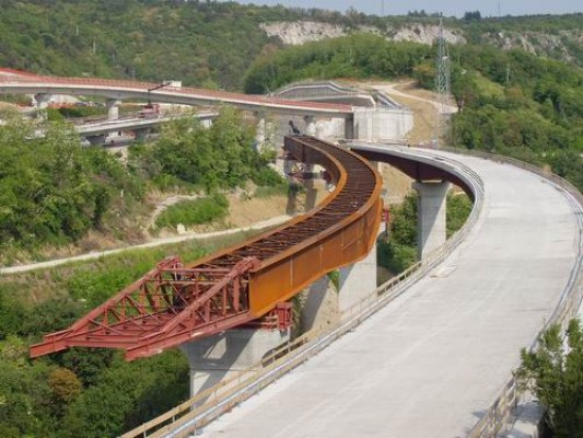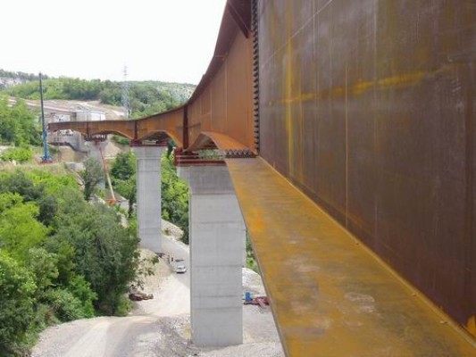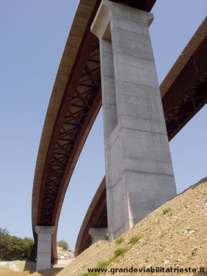 Il viadotto Cattinara, sulla tratta Venezia - Trieste, è composto da due vie a travata in curva (R=634.375m), ognuna composta da quattro campate di luce pari a: 75.4m, 93.8m , 94.0m, 76.2m. La lunghezza complessiva, compresi i retrotrave di spalla, è 340.4m. La larghezza di una via finita è 11m. L’impalcato è formato da due travi ad altezza variabile, diaframmi, controventature inferiori e superiori e soletta in c.a.
