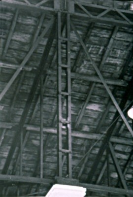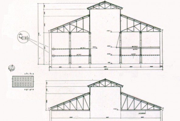 Le colonne sono in cemento armato e quelle della navata centrale sono provviste di baionette di 3,5m di altezza, formate da due ferri a C di schiena, e da alte travi di falda della lunghezza dell'intero capannone.