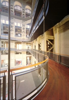 - sostituzione delle 8 colonne in c.a., aggiunte nel 1930, con colonne in acciaio, previa appensione provvisoria del solaio sovrastante a travi reticolari superiori;